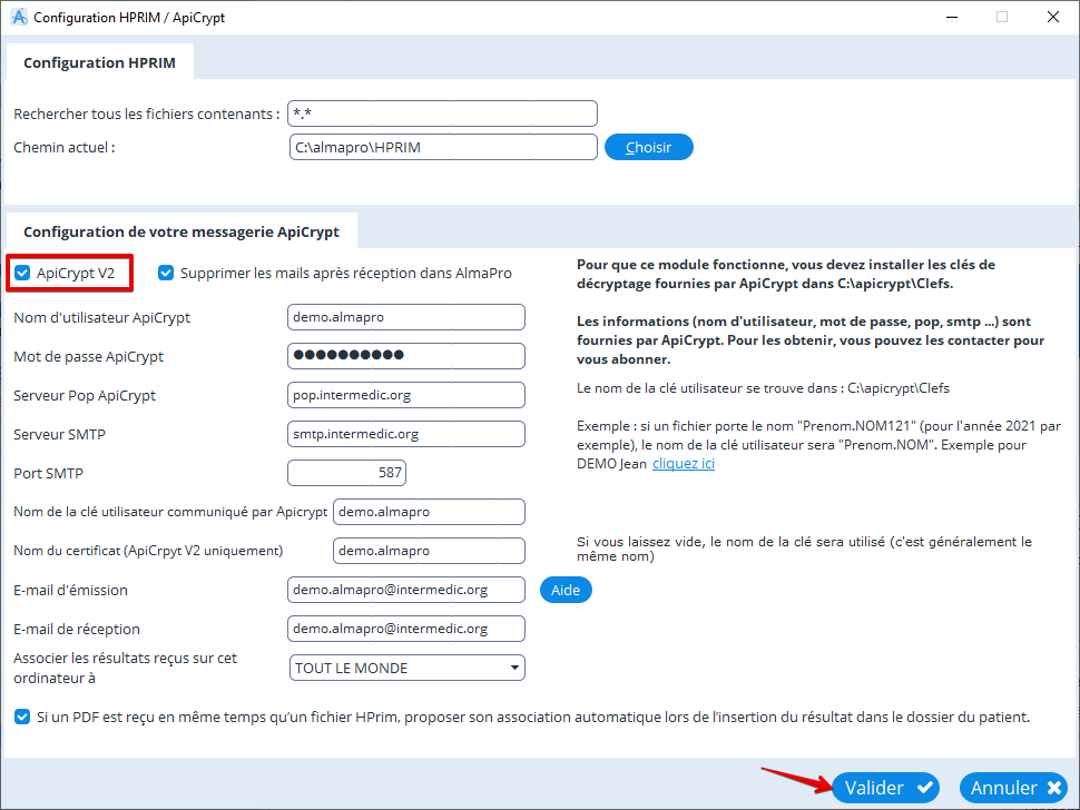 20.2. ApiCrypt V2 - Activation et configuration dans AlmaPro