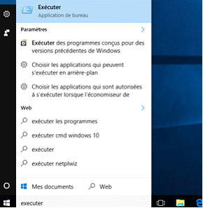 OU - Taper "Exécuter" dans la zone de recherche et cliquer sur "Exécuter"