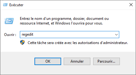 Dans la fenêtre "Exécuter" ( Windows + R ) , noter "regedit",
