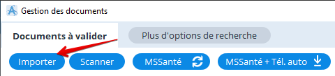 Pour importer un document depuis le gestionnaire de documents, cliquez sur