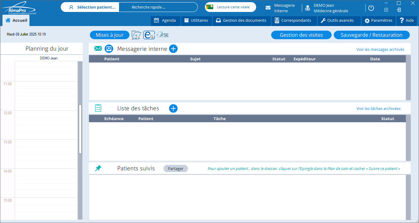 La messagerie interne avec la liste des messages reçus de vos collègues du cabinet ou de la maison de santé