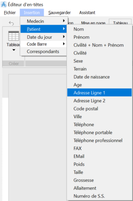 Il permet d’ insérer dans les en-têtes des champs correspondants aux données enregistrées concernant le médecin ou le patient