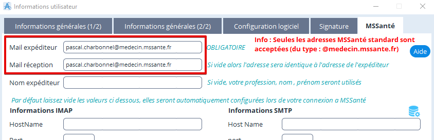 Pour MSSanté, il est uniquement nécessaire de renseigner votre adresse MSSanté dans votre profil utilisateur.
