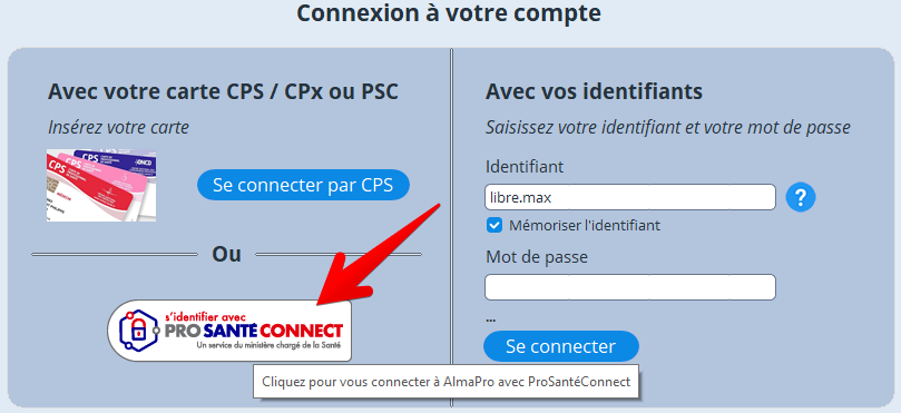 6.3. Ouvrir AlmaPro avec Pro Santé Connect