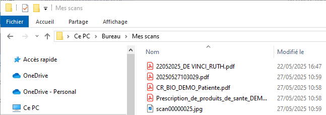 Prenons pour exemple le cas d'une source "Documents scannés" qui pointe sur un répertoire "Mes scans" sur le bureau :