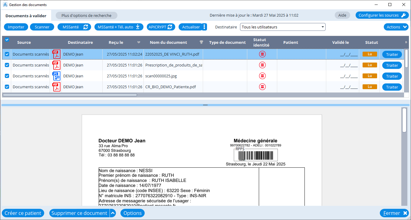 Une fois ces sources créées, le gestionnaire ira directement scruter les fichiers s'y trouvant pour les faire apparaître dans la liste des traitements à traiter.