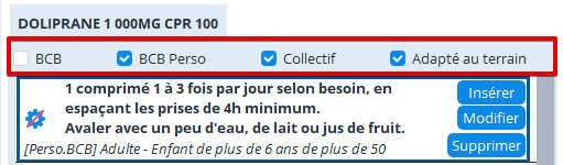 Le dernière option permet que les différentes cases du même nom soient cochées dans la liste des posologies lors l'ouverture du dossier patient :
