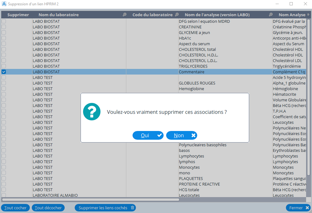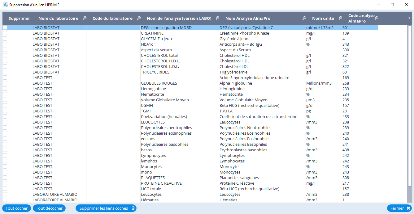 Pour supprimer une association, cliquez sur le menu « HPRIM » puis « Gestion des associations LABO / AlmaPro » :