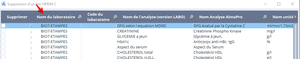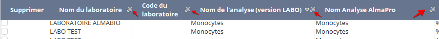 Trier une colonne en fonction du nom de l'analyse (version laboratoire) ou par le nom de l'analyse données par AlmaPro