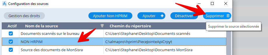 Une "Source" est un dossier paramétré par un utilisateur qui souhaite que les documents se trouvant dans ce répertoire soient affichés dans le gestionnaire de documents (pour les insérer dans le dossier des patients par exemple).