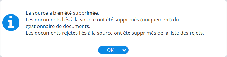 Supprimer une source de documents ne supprimera pas les documents sur votre disque dur.