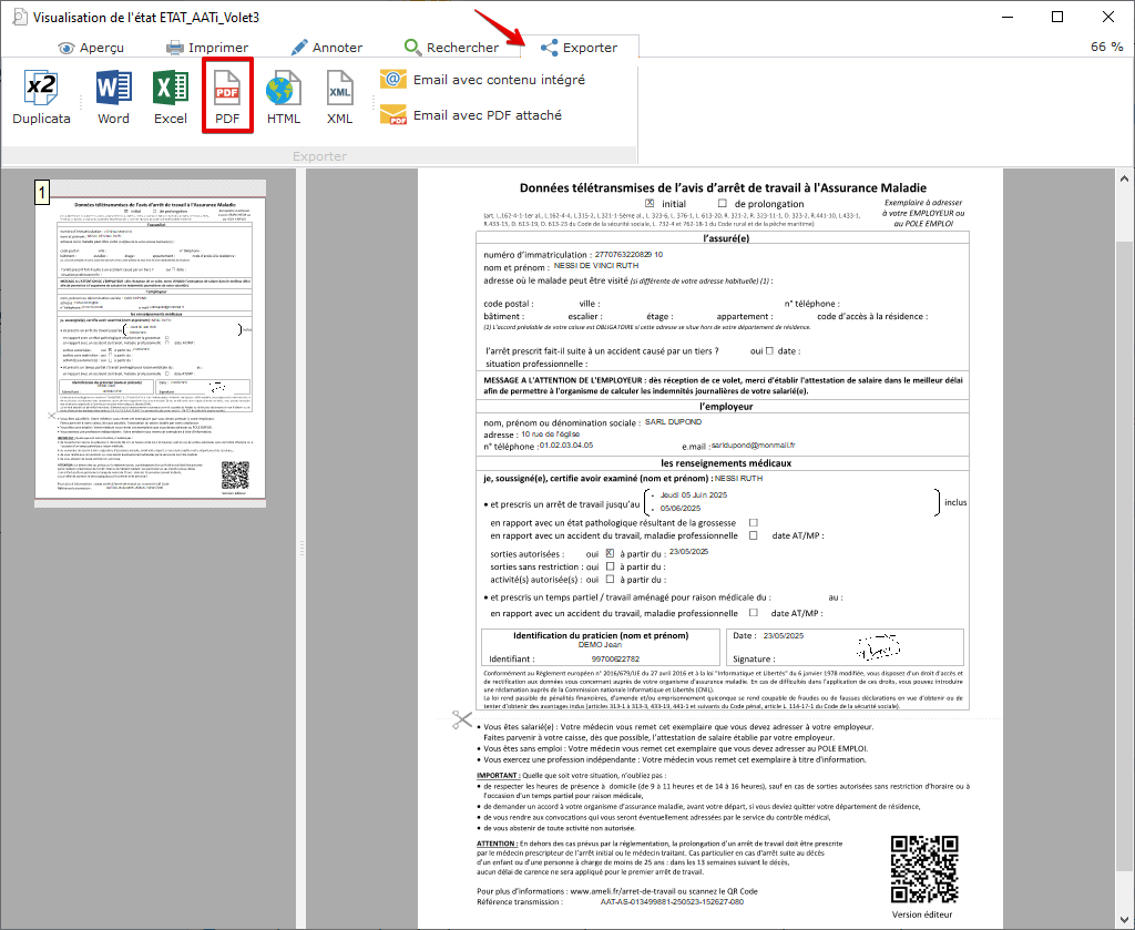 Pour enregistrer le volet employeur au format PDF, cliquez sur