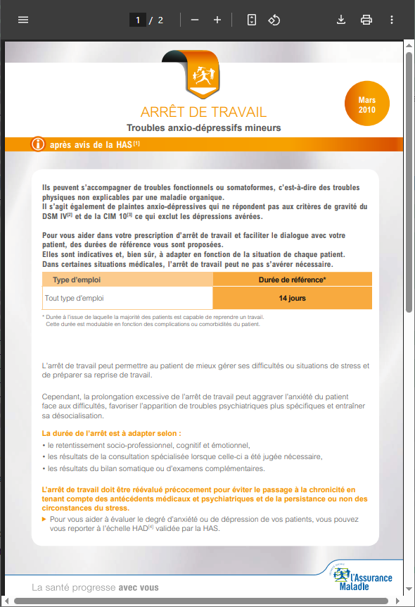 Pour obtenir plus d'informations sur les durées indicatives préconisées par l'Assurance-Maladie