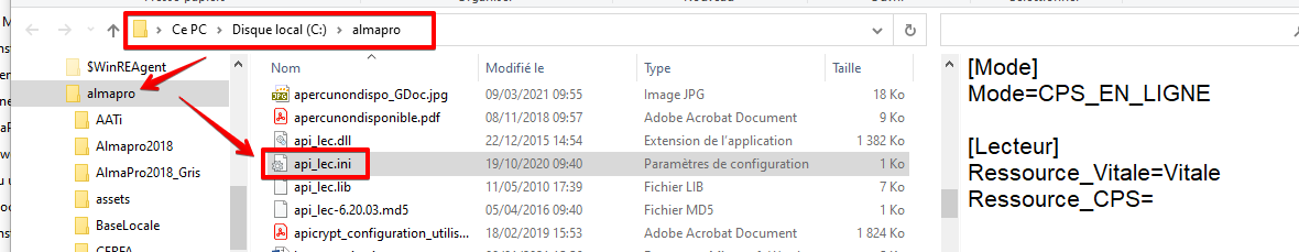 Repérer le fichier "api_lec" ou "api_lec.ini" et double cliquer sur le fichier pour l'ouvrir dans le bloc-note.
