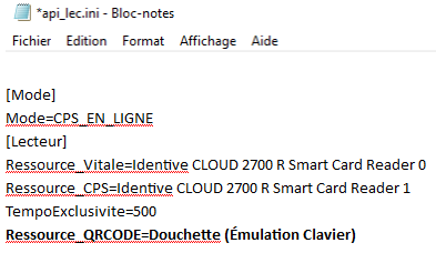 Ne tenez pas compte des autres valeurs au dessus (Ressource_Vitale= et Ressource_CPS= ...etc ) , elles sont propres aux installations de chacun pour vos lecteurs de carte vitale et CPS.