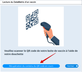 Puis placer le QR Code de votre boîte de vaccin devant votre lecteur pour qu'il récupère les informations.
