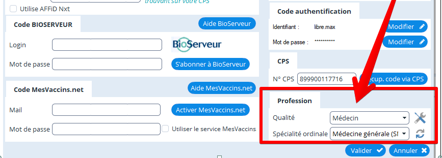 qu'il n'est pas possible de renseigner le numéro CPS suivre cette procédure cliquez ici Après avoir renseigner le "N° CPS " dans la fenêtre « Informations utilisateur », dans l'encadré "Profession" vérifier votre "Qualité" et "Spécialité ordinale".