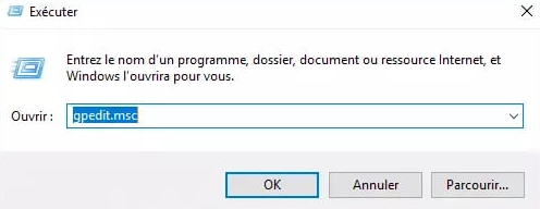 Puis dans la fenêtre ci-contre tapez gpedit.msc